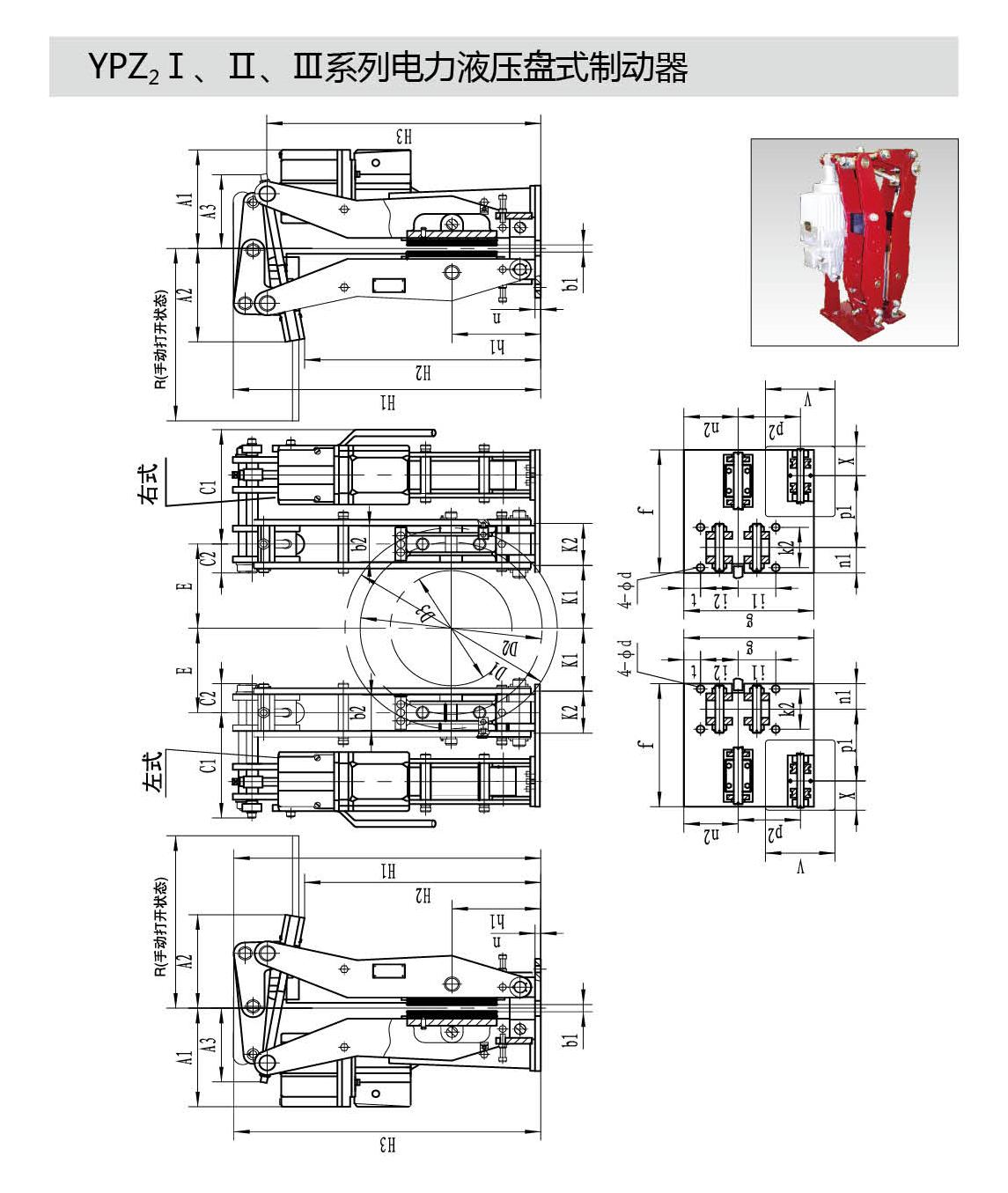 YPZ2ⅠⅡⅢ系列電力液壓盤式制動器是一種高性能、多功能的先進(jìn)產(chǎn)品。由于其具有瓦塊退距自動均等,襯墊磨損自動補(bǔ)償?shù)认冗M(jìn)功能,使用過程中維護(hù)非常便捷。通過增設(shè)各種限位開關(guān),可給主機(jī)PLC提供所需要的聯(lián)鎖保護(hù)信號。非常適合各種現(xiàn)代的大型裝卸機(jī)械、起重運(yùn)輸機(jī)械、冶金設(shè)備、礦山設(shè)備及工程機(jī)械中各種機(jī)構(gòu)的減速和維持(停車)制動。